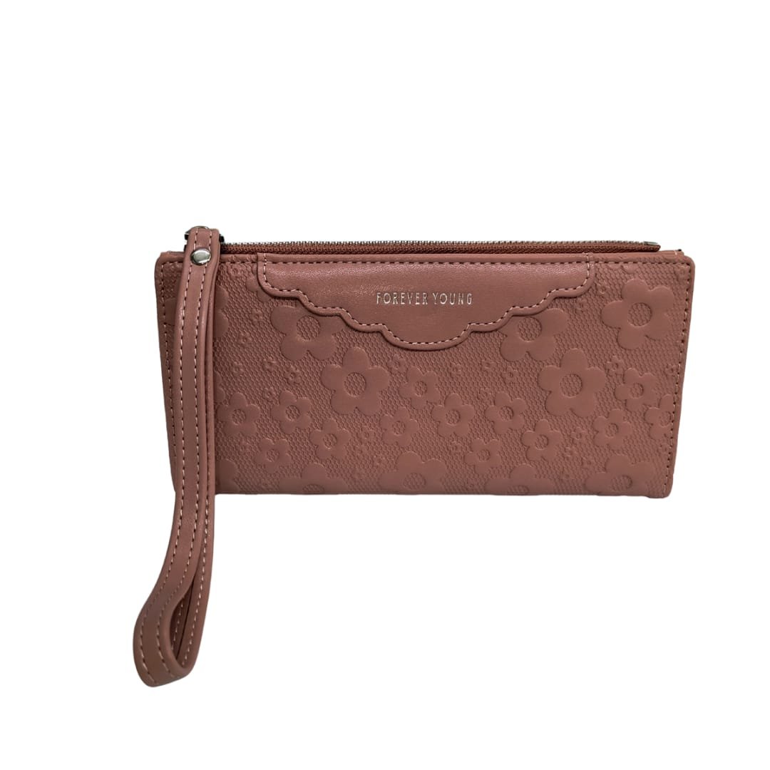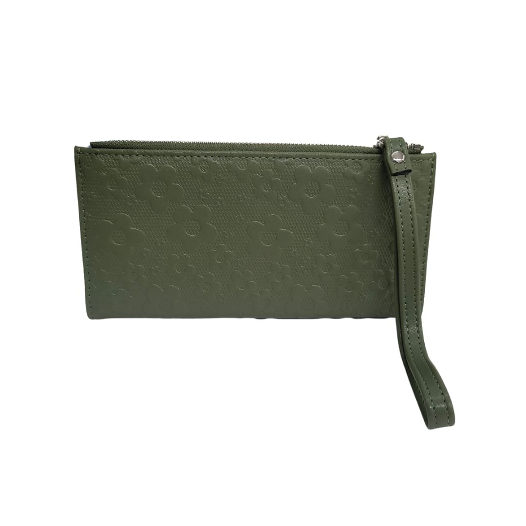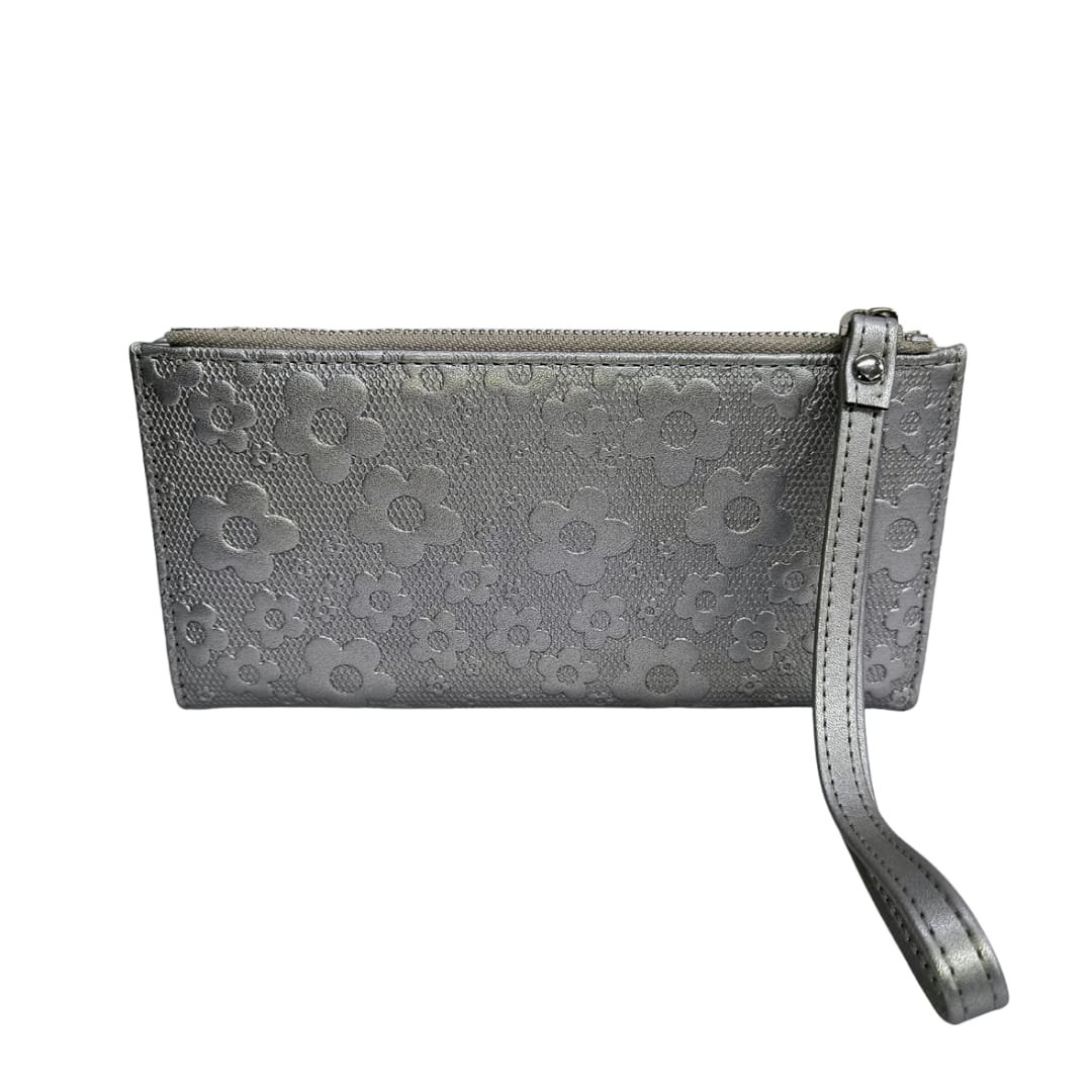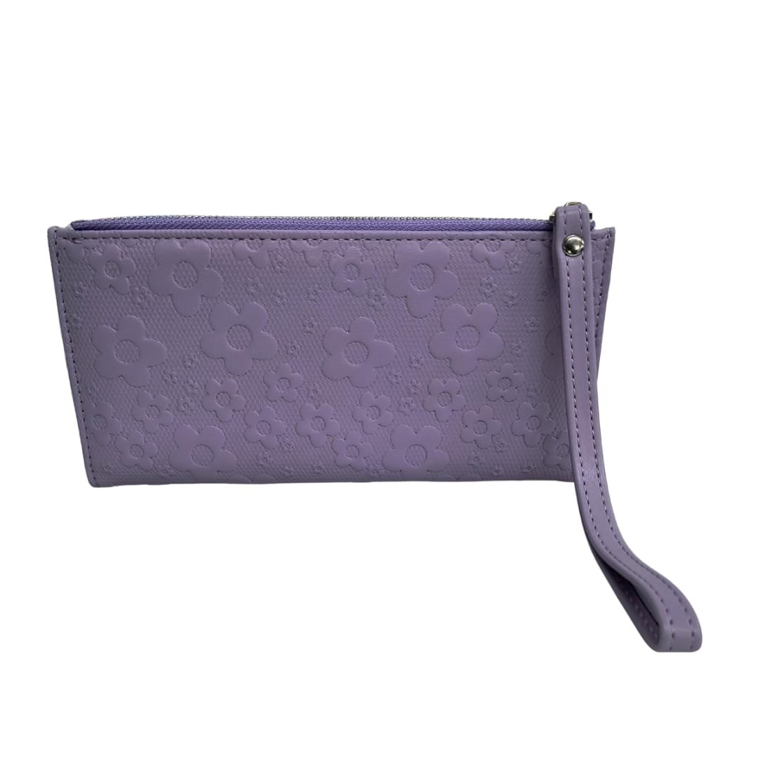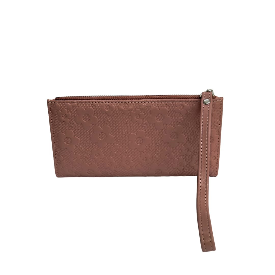 Effortlessly elegant and functionally spacious, this floral textured long wallet is the perfect companion for your everyday essentials. The embossed flower design adds a soft, feminine charm, while the sturdy zip closure and wristlet strap make it ideal for travel or daily use. With multiple card slots, a photo ID window, and a secure zip pocket for cash or coins, it’s crafted to keep you stylishly organized on the go.