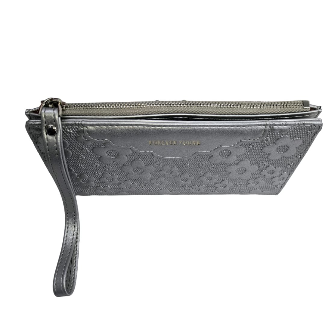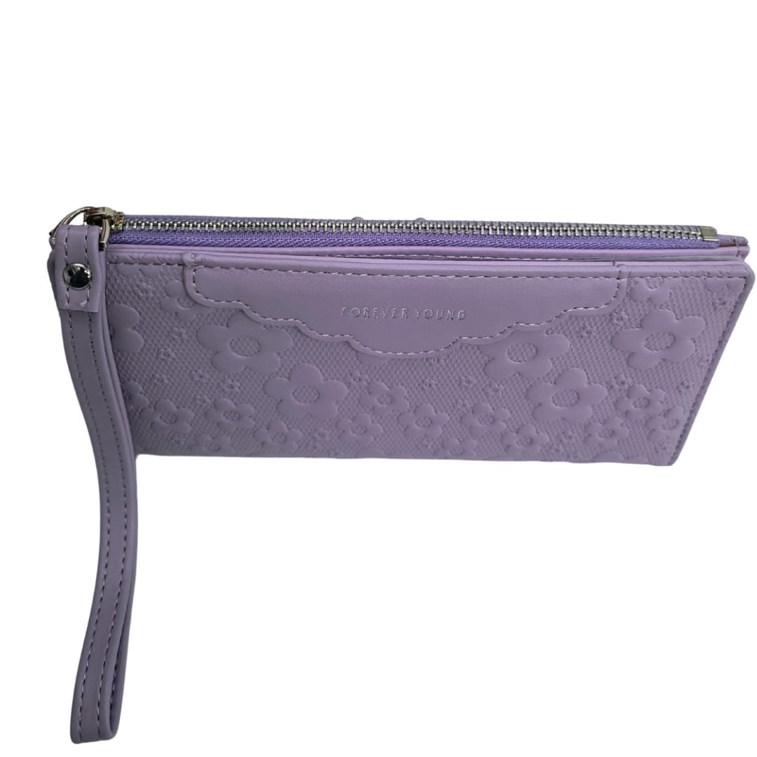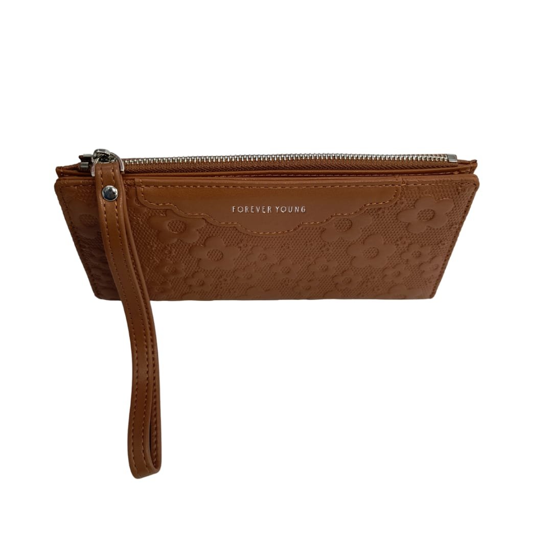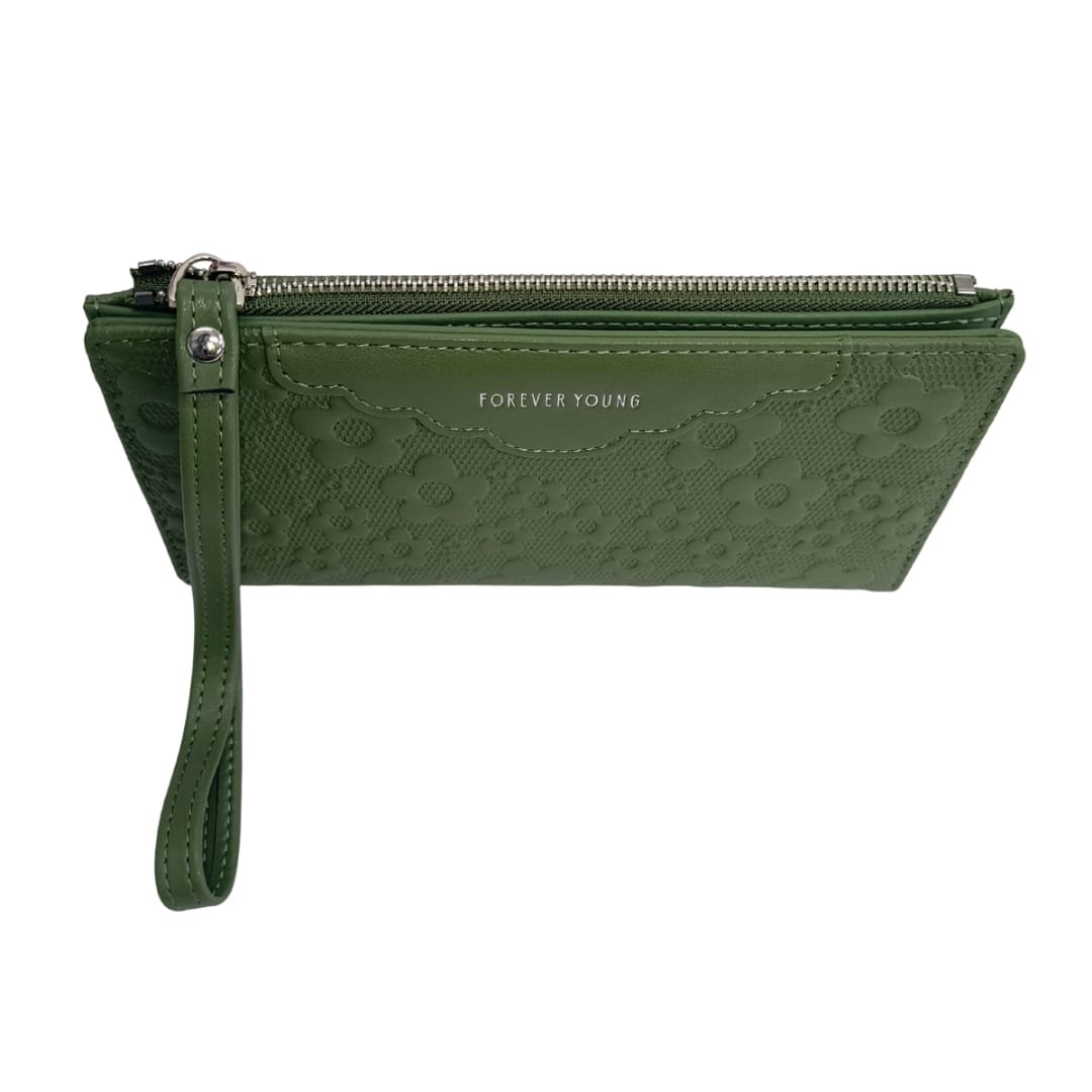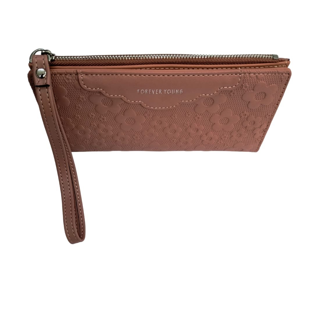 Effortlessly elegant and functionally spacious, this floral textured long wallet is the perfect companion for your everyday essentials. The embossed flower design adds a soft, feminine charm, while the sturdy zip closure and wristlet strap make it ideal for travel or daily use. With multiple card slots, a photo ID window, and a secure zip pocket for cash or coins, it’s crafted to keep you stylishly organized on the go.